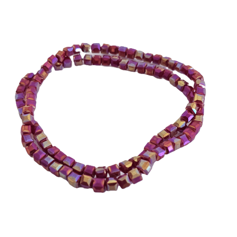 שרשרת חרוזי קריסטל מרובעים 4 מ”מ – בורדו רובי מתחלף מבריק