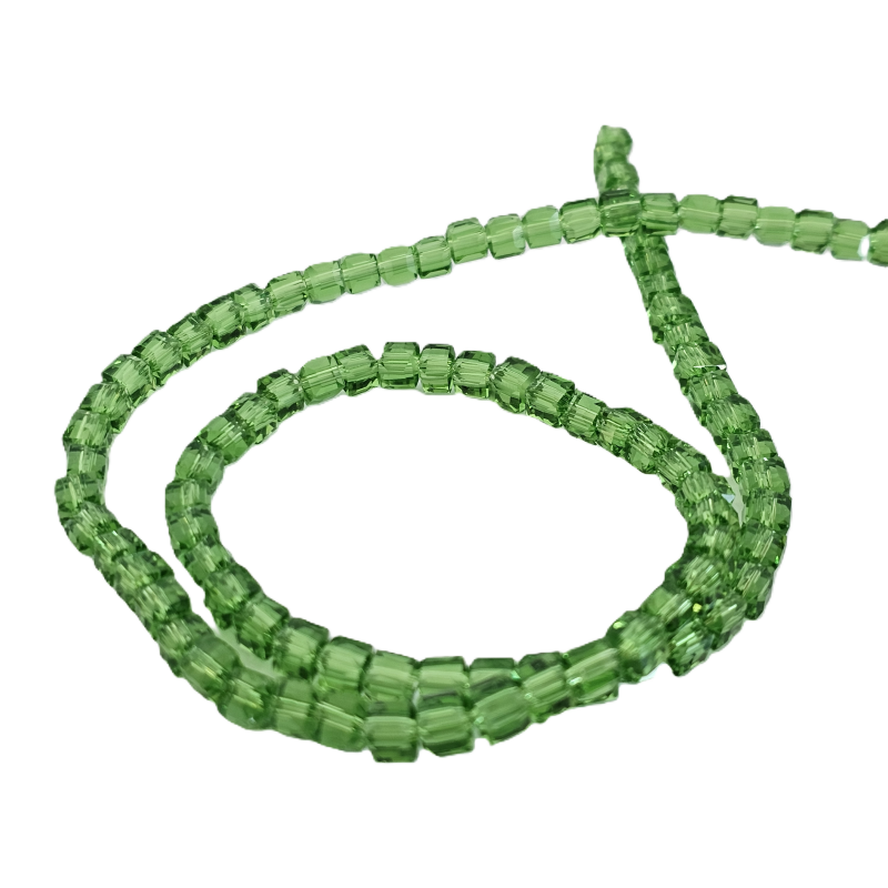 שרשרת חרוזי קריסטל מרובעים 4 מ”מ – ירוק דשא שקוף