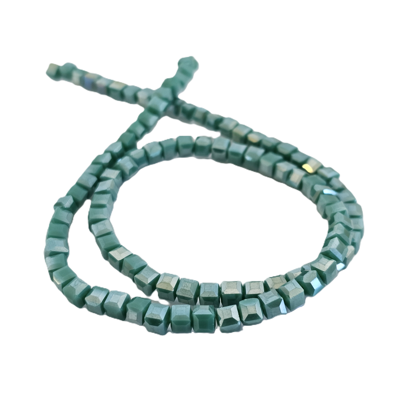 שרשרת חרוזי קריסטל מרובעים 4 מ”מ – ירוק טורקיז מבריק