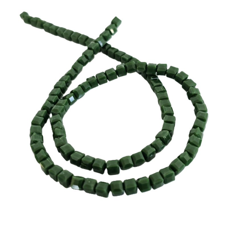 שרשרת חרוזי קריסטל מרובעים 4 מ”מ – ירוק כהה מט