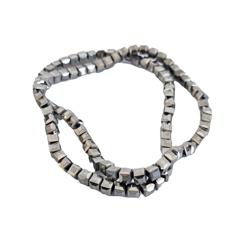 שרשרת חרוזי קריסטל מרובעים 4 מ”מ – כסף מטאלי