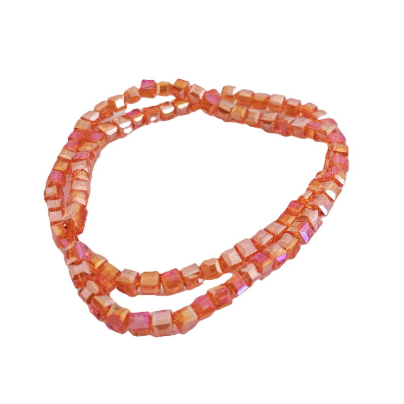 שרשרת חרוזי קריסטל מרובעים 4 מ”מ – כתום מתחלף שקוף