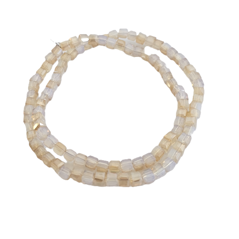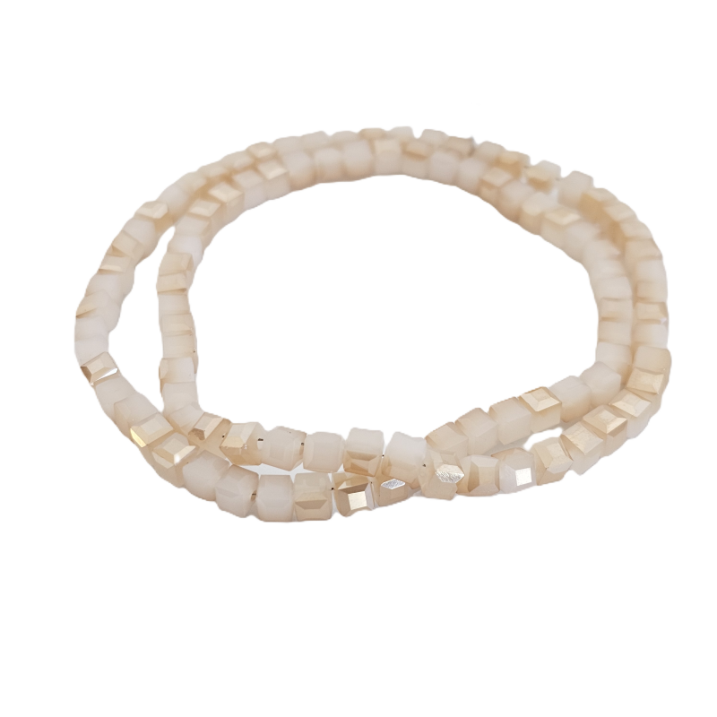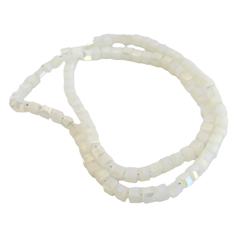 שרשרת חרוזי קריסטל מרובעים 4 מ”מ – גוון פנינה