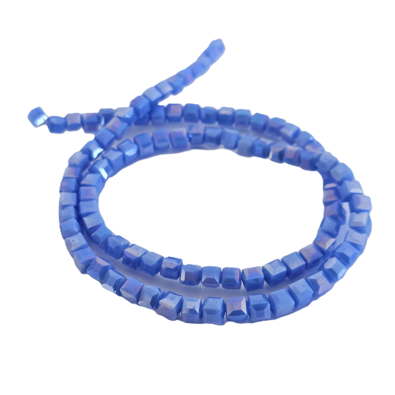 שרשרת חרוזי קריסטל מרובעים 4 מ”מ – תכלת כהה מבריק