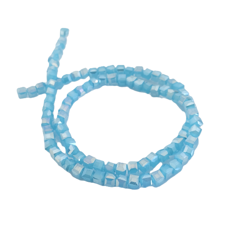 שרשרת חרוזי קריסטל מרובעים 4 מ”מ – תכלת בהיר מבריק