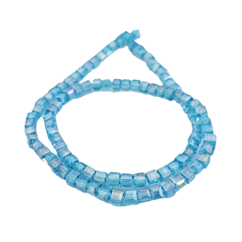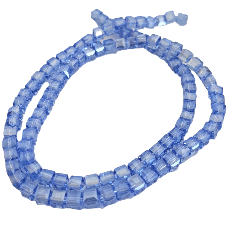 שרשרת חרוזי קריסטל מרובעים 4 מ”מ – תכלת כהה שקוף