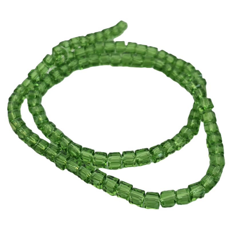 שרשרת חרוזי קריסטל מרובעים 6 מ”מ – ירוק דשא שקוף