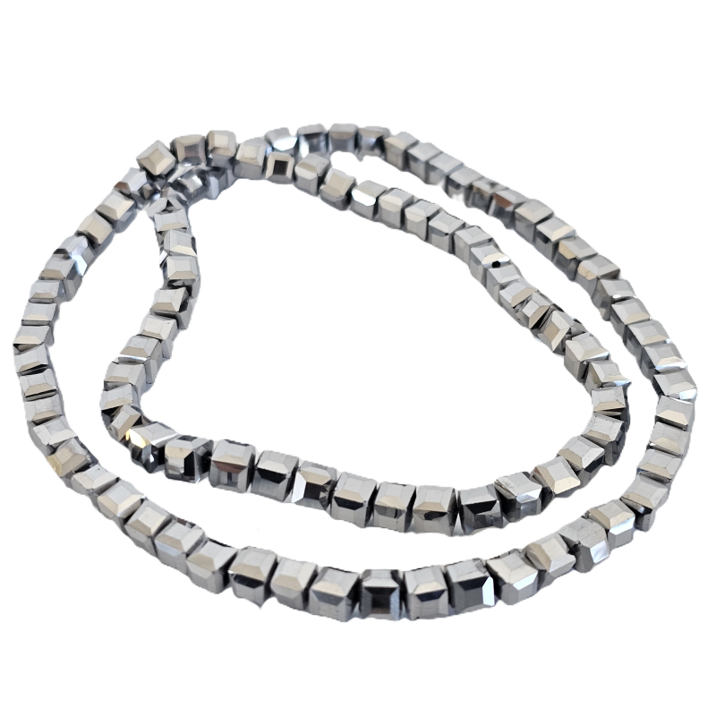 שרשרת חרוזי קריסטל מרובעים 6 מ”מ – כסף מטאלי