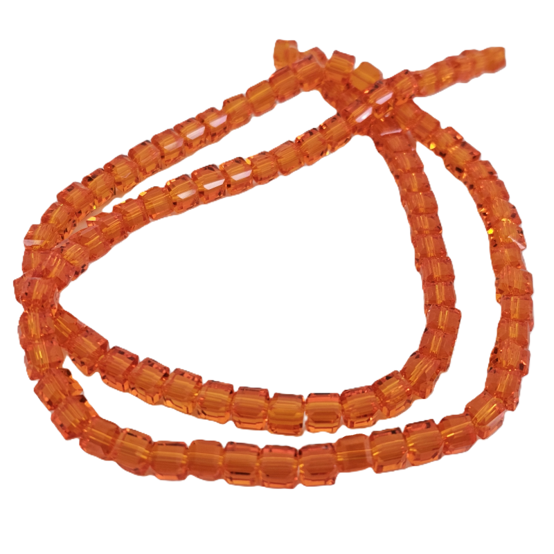 שרשרת חרוזי קריסטל מרובעים 6 מ”מ – כתום שקוף