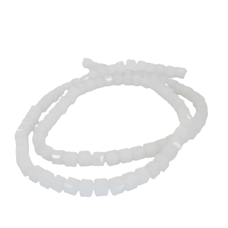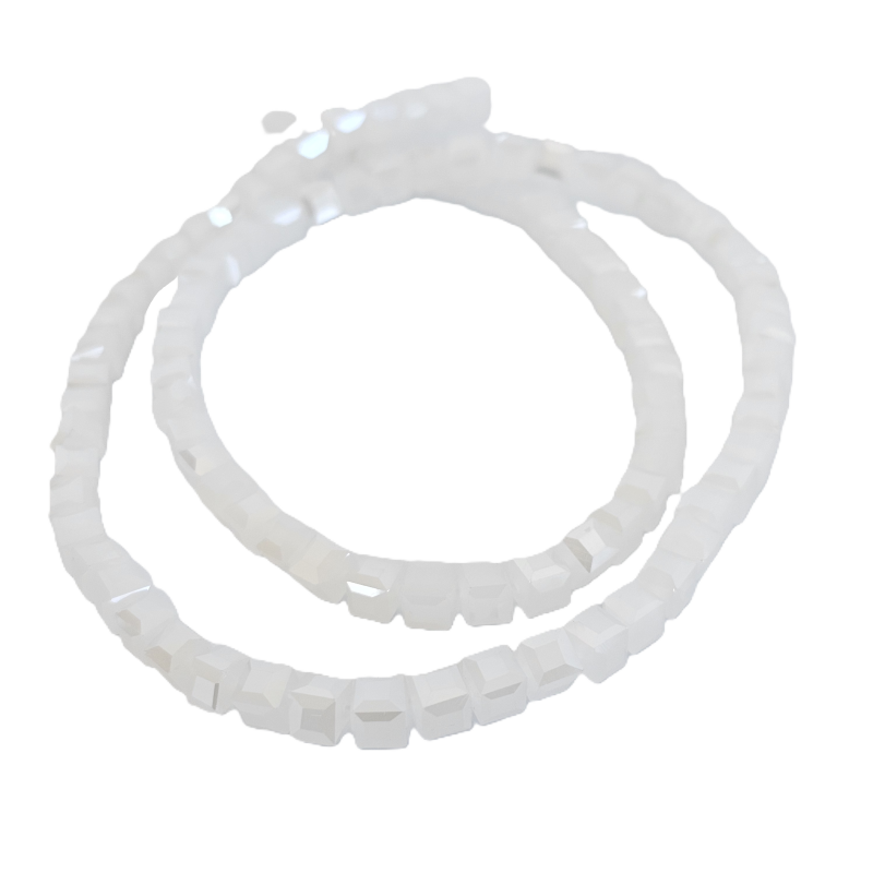 שרשרת חרוזי קריסטל מרובעים 6 מ”מ – לבן מט