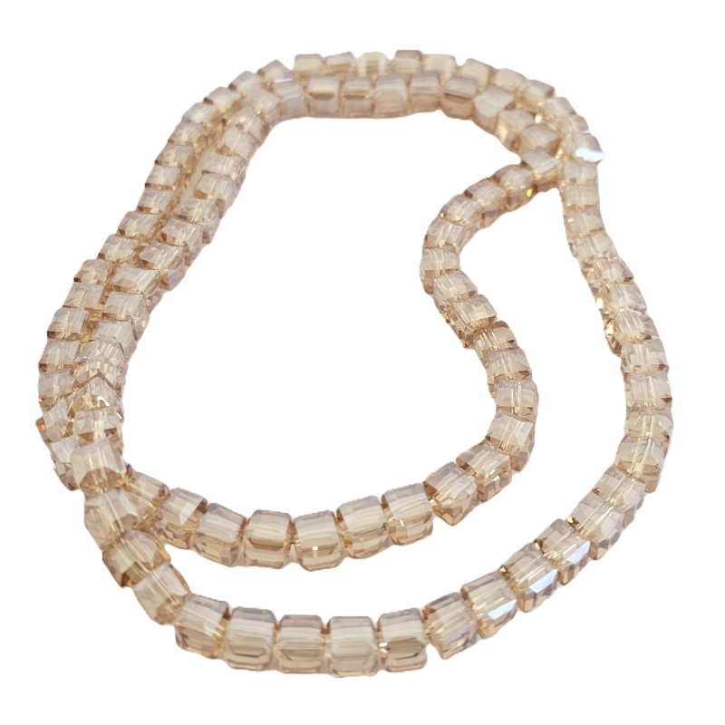 שרשרת חרוזי קריסטל מרובעים 6 מ”מ – שמפניה שקוף