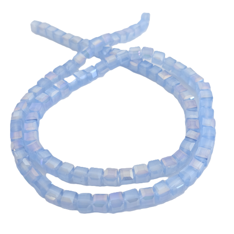 שרשרת חרוזי קריסטל מרובעים 6 מ”מ – תכלת ג’ינס שקוף