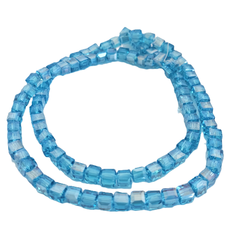 שרשרת חרוזי קריסטל מרובעים 6 מ”מ – תכלת כהה שקוף