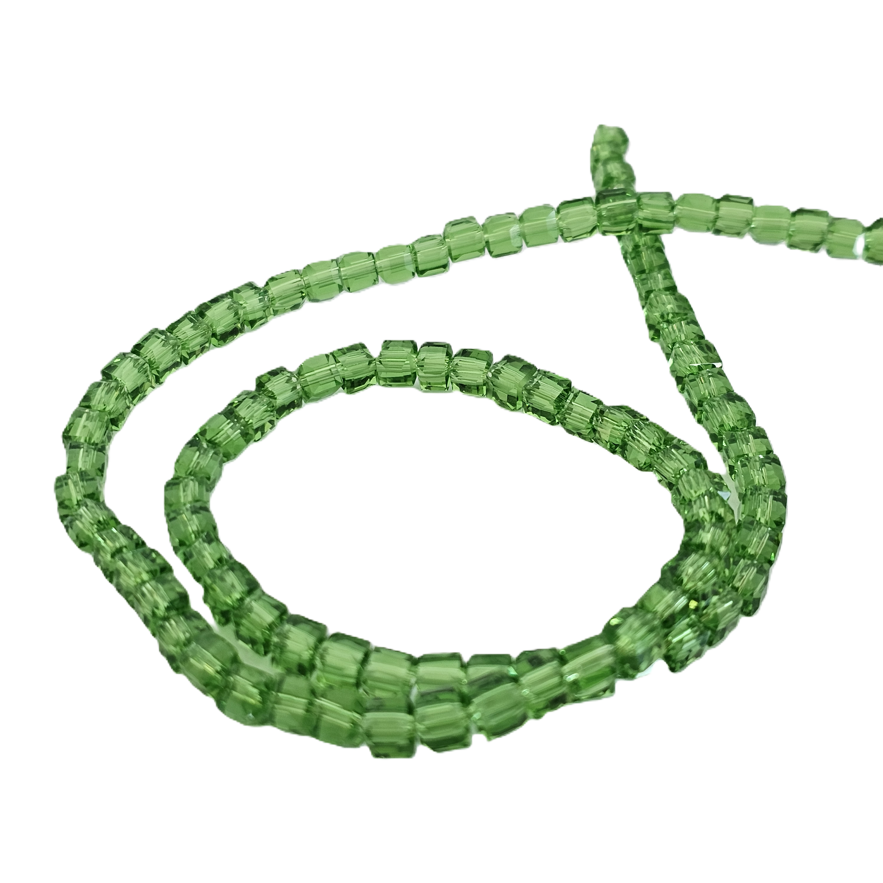 שרשרת חרוזי קריסטל מרובעים 4 מ”מ – ירוק דשא שקוף