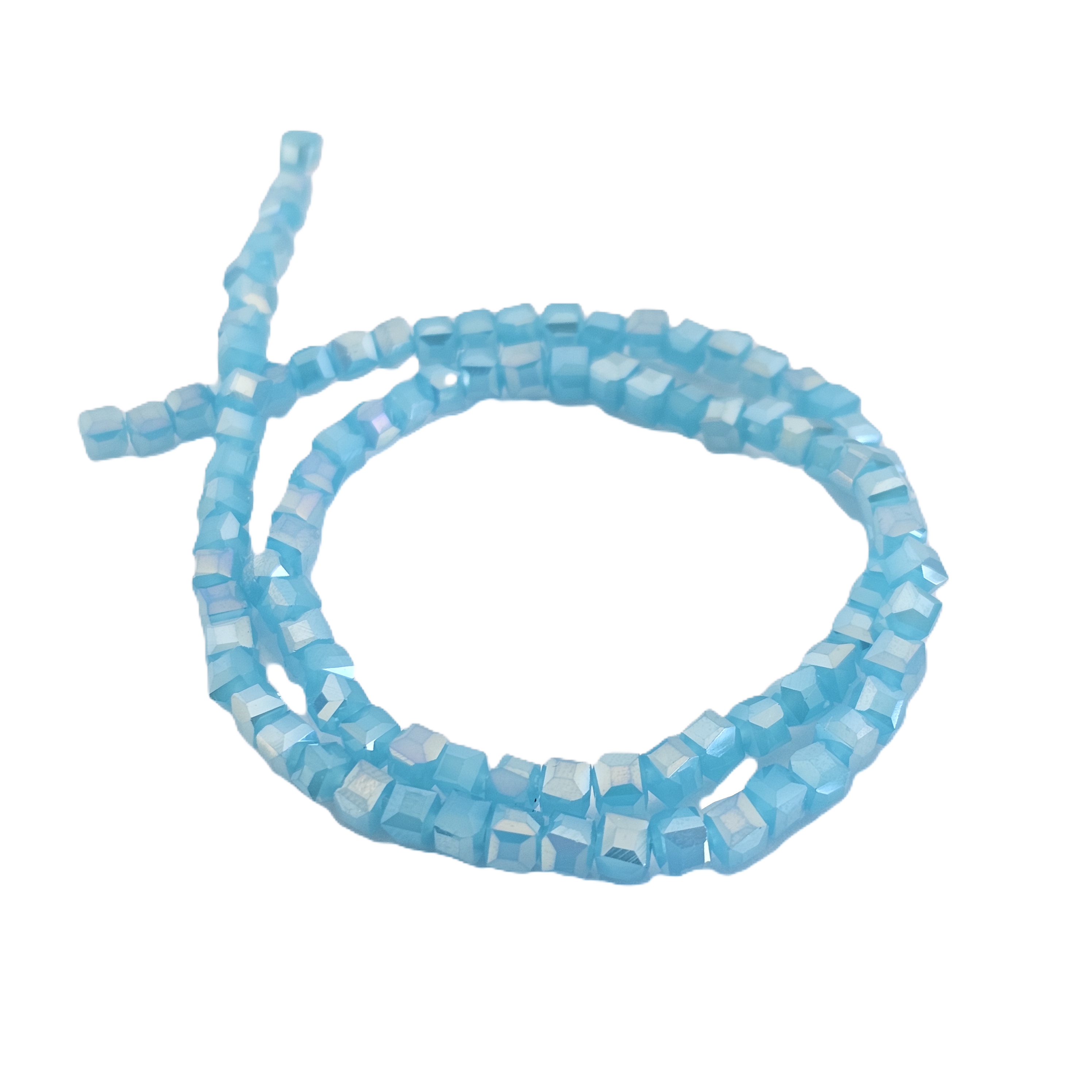 שרשרת חרוזי קריסטל מרובעים 4 מ”מ – תכלת כהה מבריק